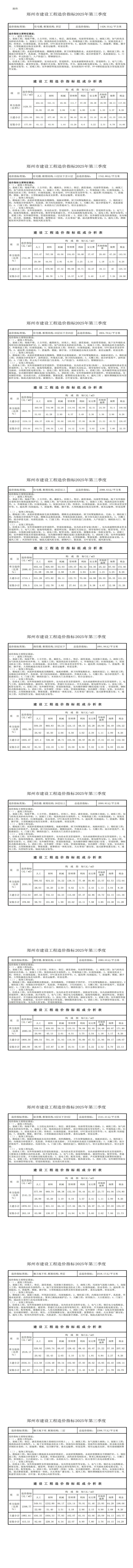 2025年第三季度郑州市建设工程造价指标